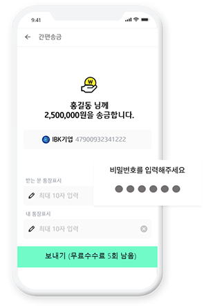 6자리 간편비밀번호를 사용하여 쉽고 간편하게 이체가 가능합니다.